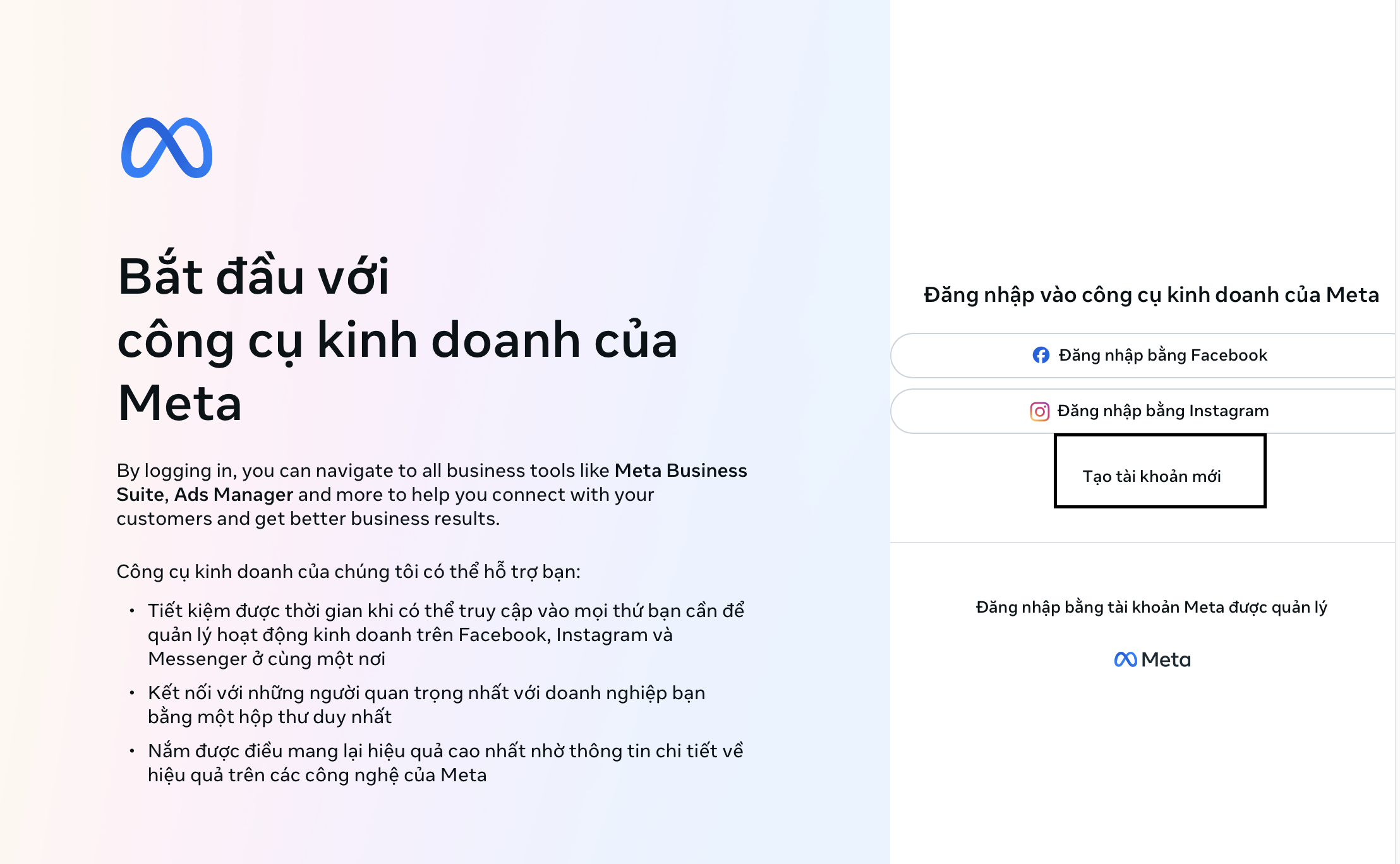 - Vào link chính thức: https://business.facebook.com